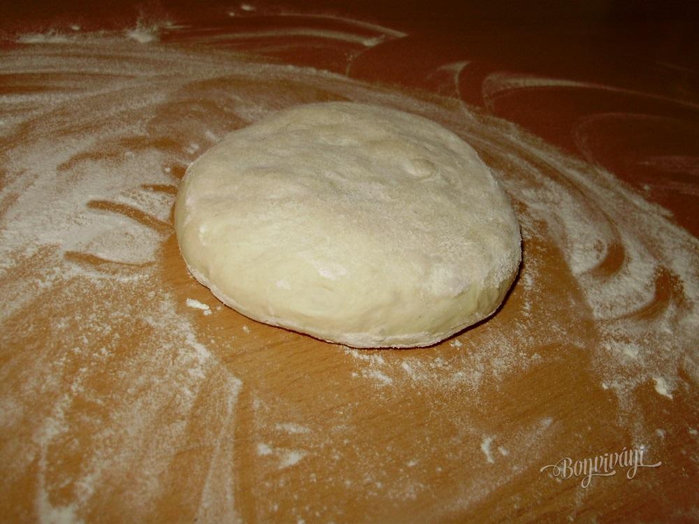 Uvedené suroviny na cesto dáme do misky a vodu prilievame postupne, podľa potreby. Spracujeme pevnejšie cesto, ktoré sa nelepí na misku ani ruky, je hladké a vláčne, elastické.