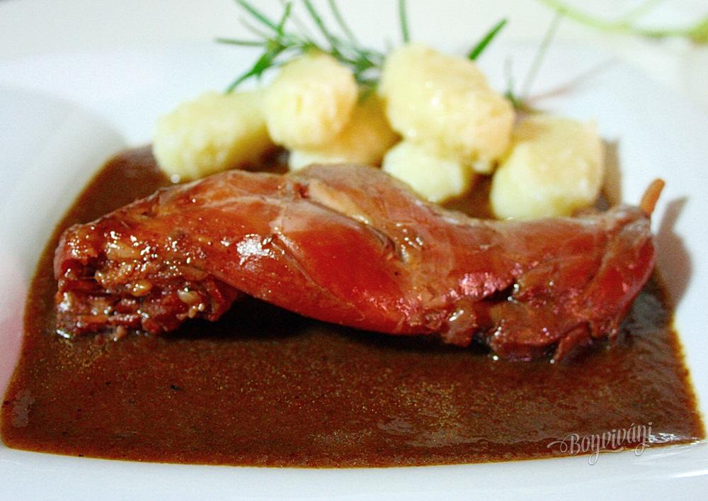 Toto je recept 3 v 1. Králika v čiernej omáčke, zemiakové knedlíčky a perník na strúhanie. Klasický recept staročeskej kuchyne, ktorá je podľa mňa jedna z najchutnejších.
