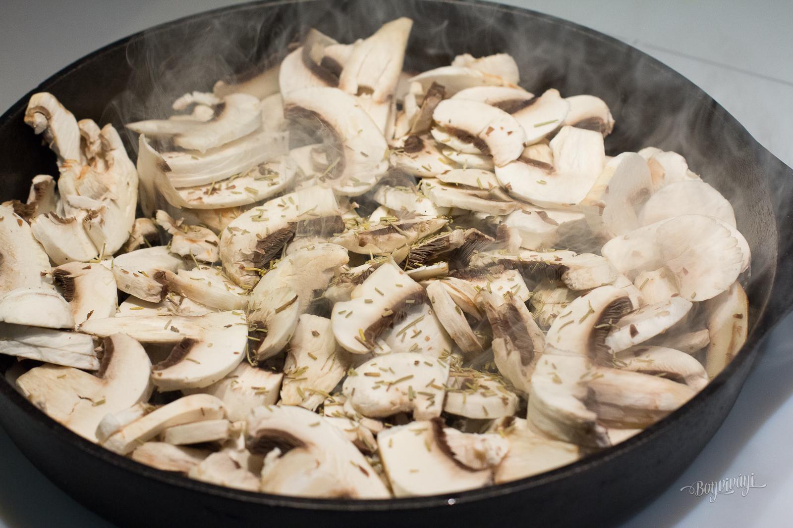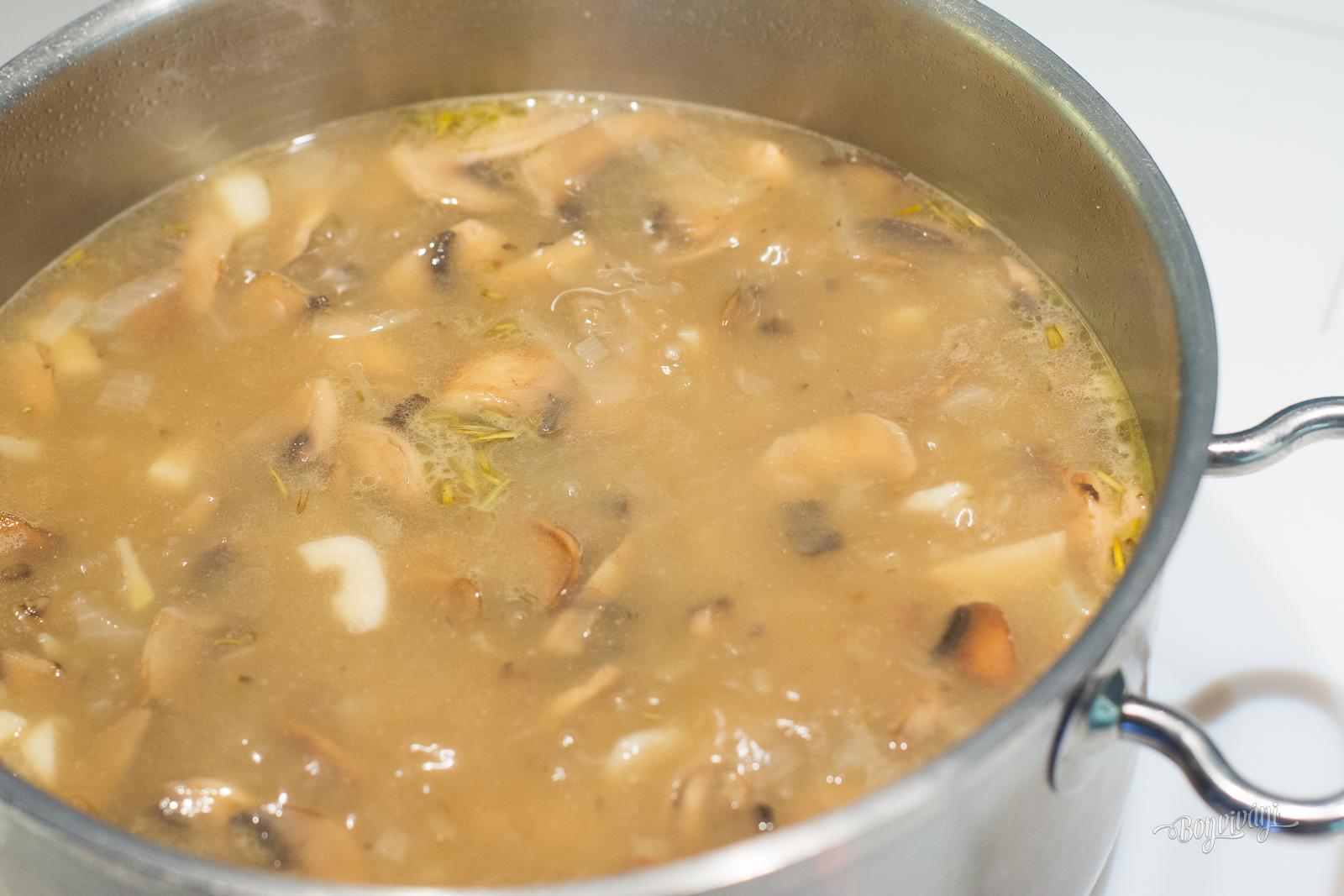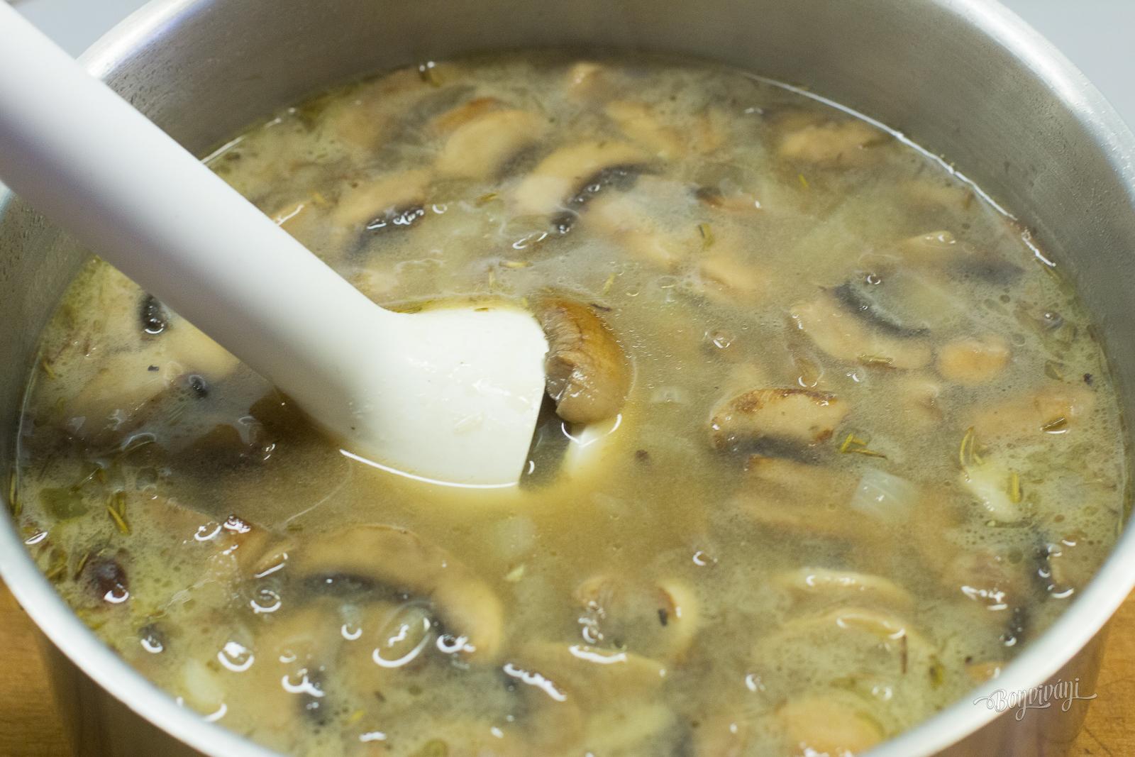 Jednoduchá, rýchla a chutná polievka z čerstvých šampiňónov. Šampiňóny sa najprv opečú, aby sa zvýraznila ich chuť. Dochutená rozmarínom a kvalitným vývarom je táto polievka vynikajúca.