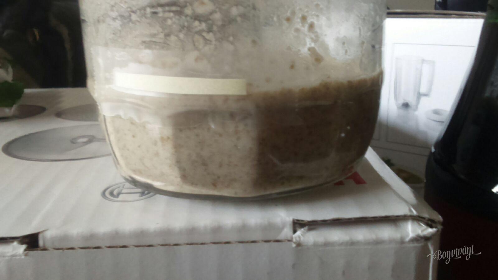Ešte poznámka: na povrchu sa môže počas čakania na bublinky objaviť tmavšia krusta. To nevadí. Jednoducho ju vtlačíme dnu a štartér dobre premiešame.