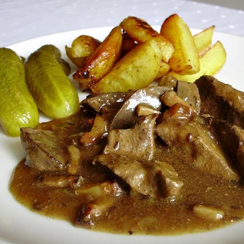 Dusená pečeň na slanine