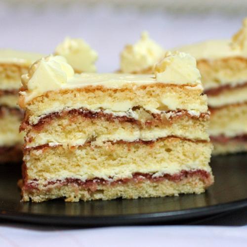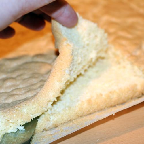 Bielky vyšľaháme so štipkou soli na hustú penu. V druhej miske vyšľaháme žĺtky s cukrom tiež do peny. Prišľaháme teplú vodu a postupne primiešavame múku s kypriacim práškom a sneh. Cesto vylejeme na papier na plech. Upečieme vo vopred vyhriatej rúre na 180 stupňov a necháme vychladnúť.