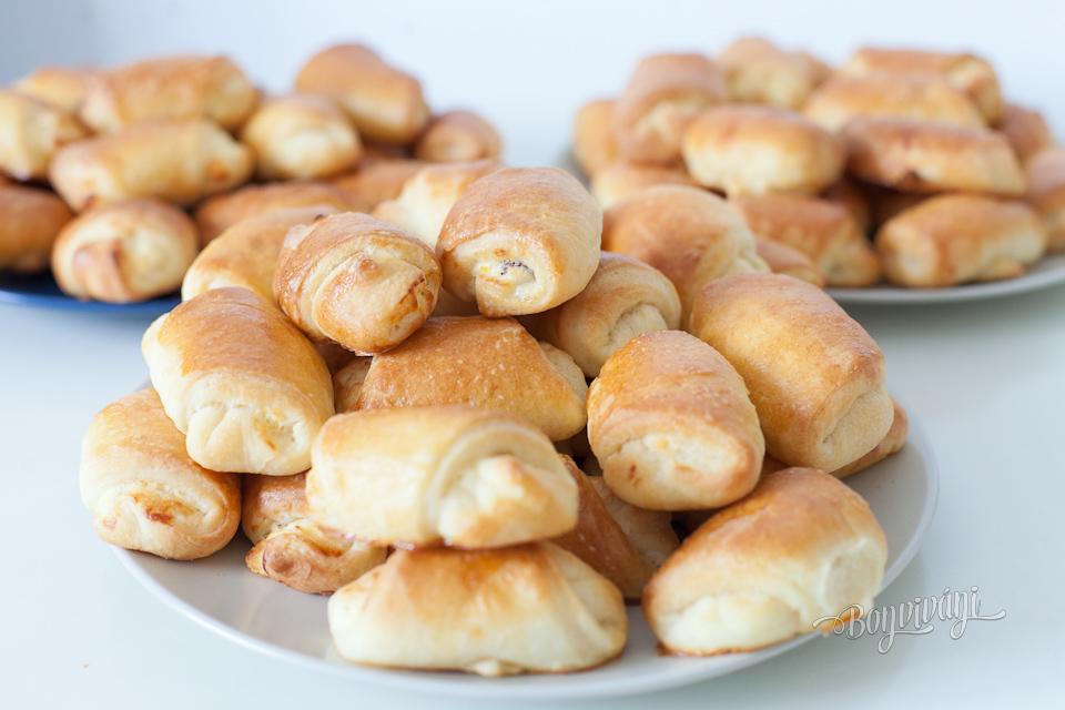 Recept určite nektorí z vás poznajú i s inými plnkami. Tiež sme dávali aj orechy, mak, lekvár... ale tvarohové nám chutia najviac. Z polovičnej dávky vyjdú dva plechy, na každom 20 rožkov.