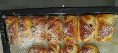 Poukladáme ich na plech, potrieme vajcom, necháme podkysnúť a pečieme na 180 stupňov do zlatova.