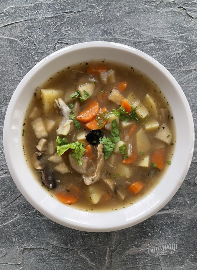 Skvelá zemiaková polievka s hubami, veľmi obľúbená v Čechách. Toto je starý rodinný recept a bramboračka je naozaj vynikajúca. Zahreje a zasýti.