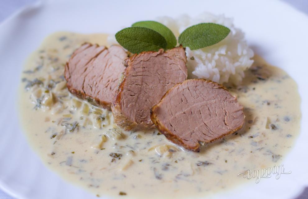 Panenku máme radi, lebo je krásne mäkkučká a šťavnatá. Doplnená o smotanovú šalviovú omáčku je to lahôdka.