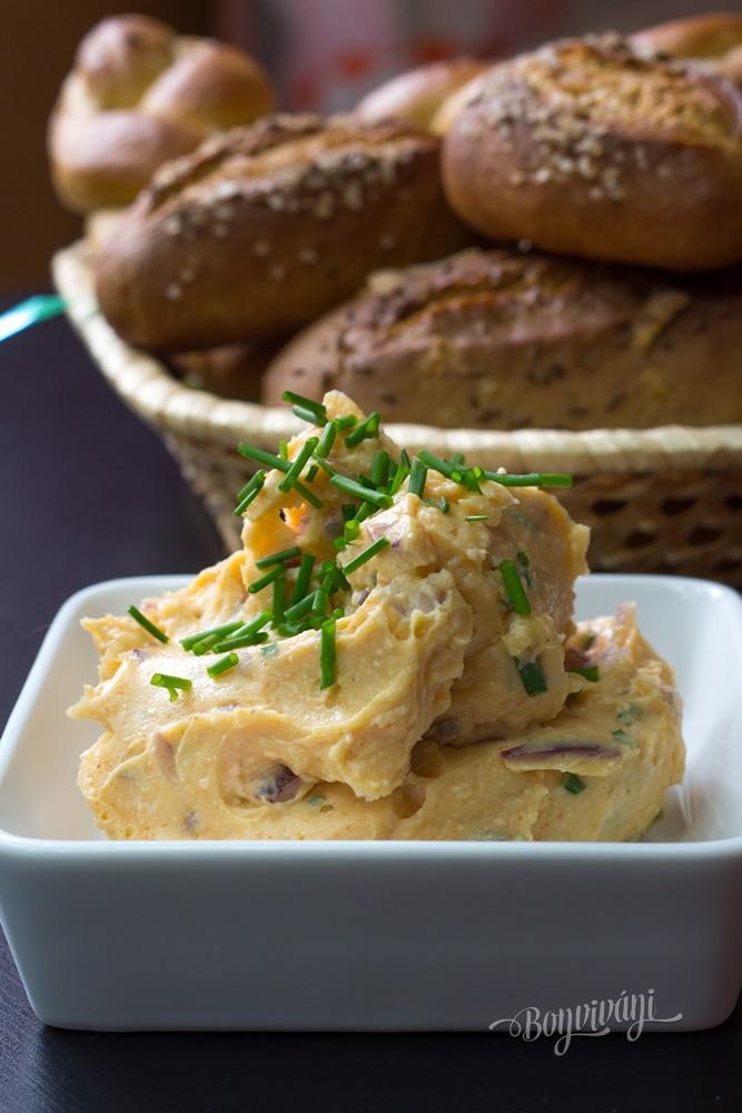 Jarná nátierka zo slovenskej bryndze, masla a cibuľky na čerstvom pečive - výborné raňajky.