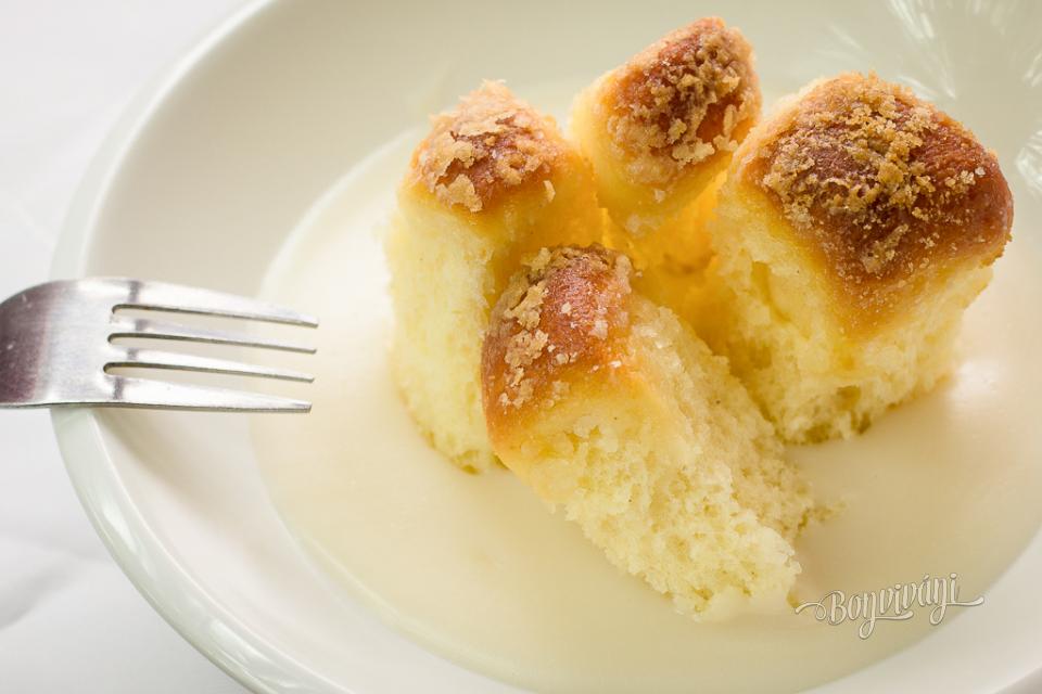 Toto je jeden naozaj skvelý recept. Jedná sa o lahodnú verziu klasických dukátových buchtičiek, vylepšenú o jedinečnú chrumkavú cukrovú krustu. Buchtičky sú pritom vo vnútri ľahulinké ako pierko. Vylepšenie spočíva v záverečnej úprave pred vložením do rúry. Buchtičky v mlieku pečené sa podávajú s kokosovým krémom.