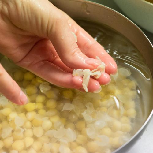 Ak varíte suchý cícer, rátajte s tým, že ho treba namočiť cez noc deň vopred. Cícer pritom zdvojnásobí svoju hmotnosť. Ak je k dispozícii cícer uvarený alebo z plechovky, hor sa do práce.