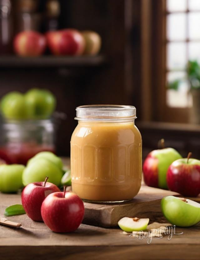 Hrniec s jablkami privedieme k varu a varíme, kým sa jablká nerozvaria. Kašu rozmixujeme ponorným mixérom, alebo v klasickom mixéri. Ešte horúcu detskú výživu ponalievane do pohárikov, zaviečkujeme a vysterilizujeme aspoň 20 minút na 180 stupňov.
