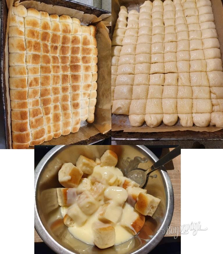Cesto prepracujeme rukami a nakrájame na menšie diely. Z nich vyšúľame valčeky, ktoré nakrájame na malé kúsky. Tieto vkladáme do pekáča, vyliateho olejom. Jednotlivé kúsky sa tiež snažíme pomastiť, aby medzi sebou nelepili.