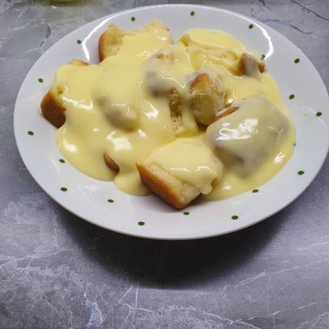 Krém pripravíme tak, že do hrnčeka dáme variť 2/3 mlieka s cukrom. V druhej tretine vymiešame vanilkový cukor s pudingom a žĺtkami a vlejeme do horúceho mlieka v hrnčeku. Krátko povaríme, ochutíme rumom a nalejeme na tanieriky s buchtičkami.