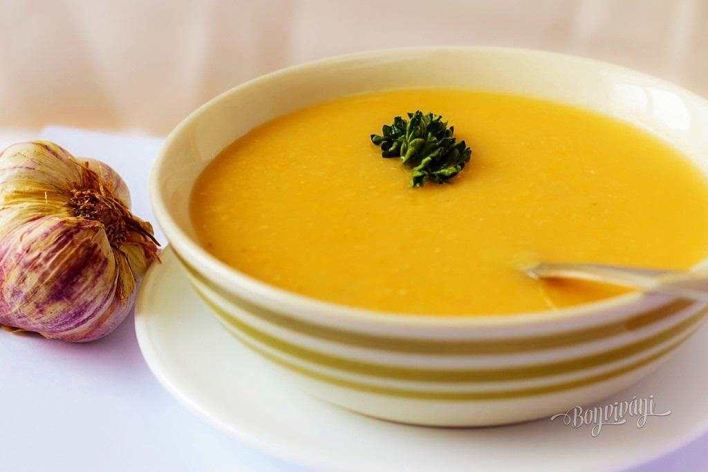 Jednoduchá lacná polievka zo sušeného lúpaného poleného hrachu, so zeleninou, dochutená cesnakom. Zahreje a zasýti.