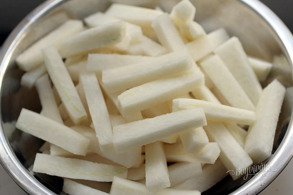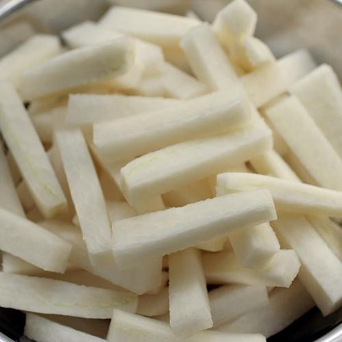 Že hranolky sa nerobia len zo zemiakov je už známe. Nedávno som skúsila hranolky z veľkej bielej reďkovky. Táto reďkovka je veľmi chutná za studena, ale aj v teplej kuchyni. Reďkovka má tvar mrkvy a tá moja vážila vyše kila.