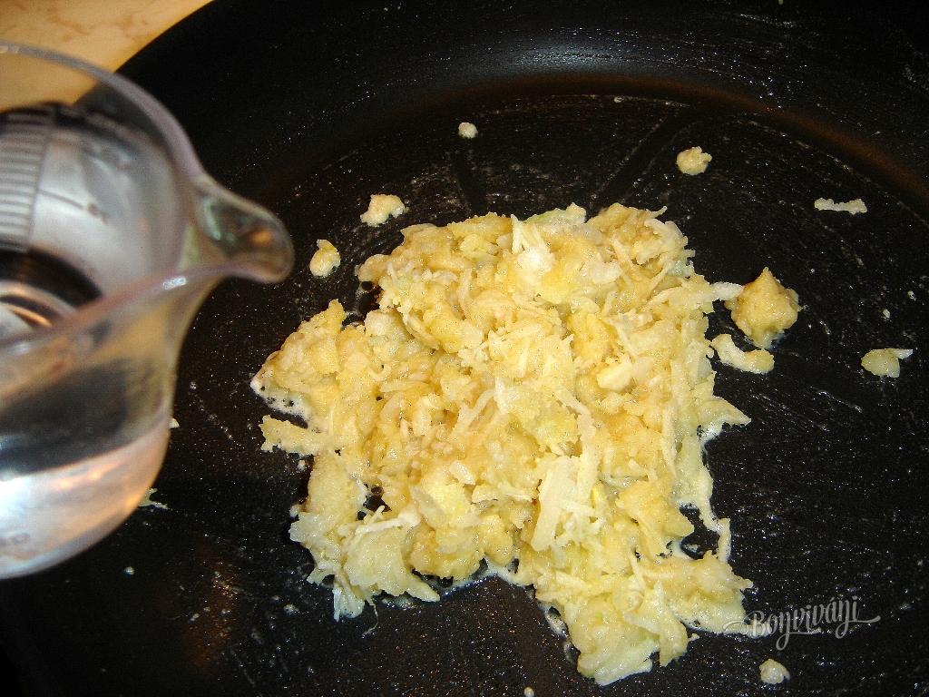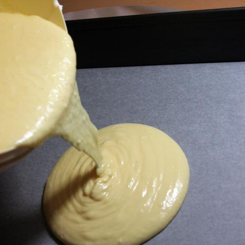 Prvé, hustejšie cesto pripravíme tak, že v miske najskôr vymiešame mlieko, olej, vajcia a cukor. Potom primiešame múku s kypriacim práškom. V druhej miske vymiešame zo všetkých surovín redšie cesto. Jogurt použite hustý, ale môžete kľudne použiť aj kyslú smotanu.