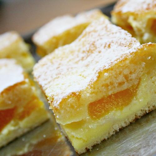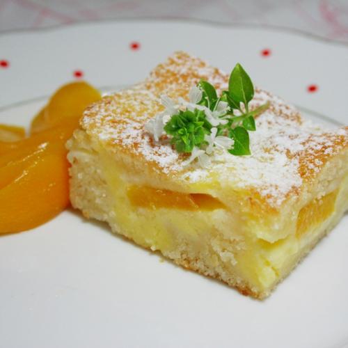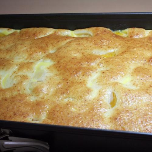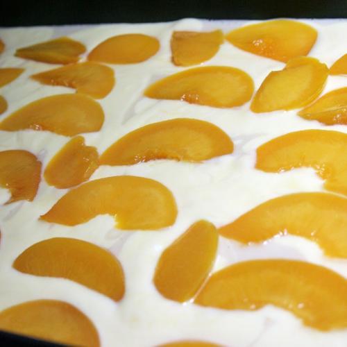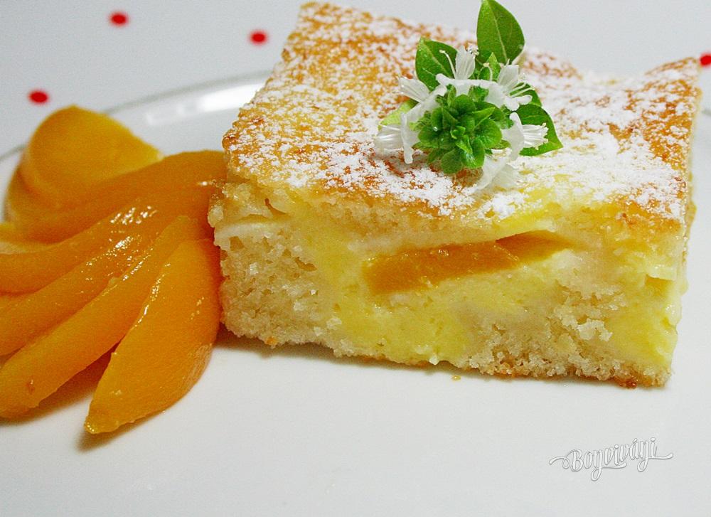 včera mi padol tento recept do oka, zaujal ma jednoduchou prípravou. Dnes z neho zostali len posledné kúsky, veľmi príjemne prekvapil,páči sa mi, že v ňom nie je žiadny krém, no vďaka jogurtovému cestu je šťavnatý. Broskyne som doplnila marhuľami - dobrá kombinácia.