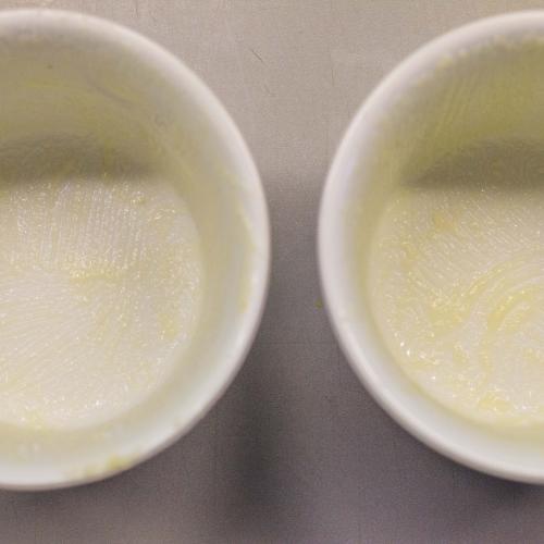 Vložíme na pekáč a do tretiny až polovice hrnčekov zalejeme teplou vodou.