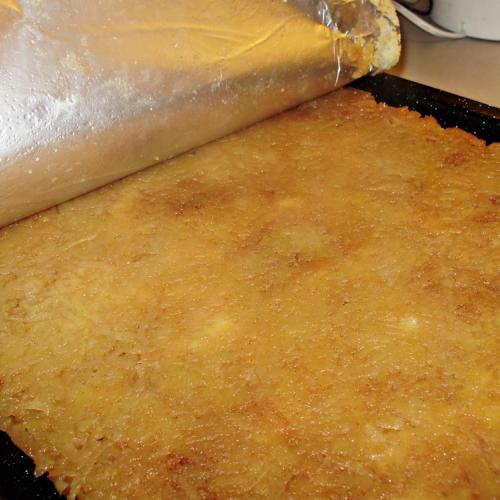Očistené jablká nastrúhame a podľa chuti zamiešame so škoricovým cukrom. Na plech dáme alobal, potrieme ho jemne olejom a rozložíme jablkovú zmes.