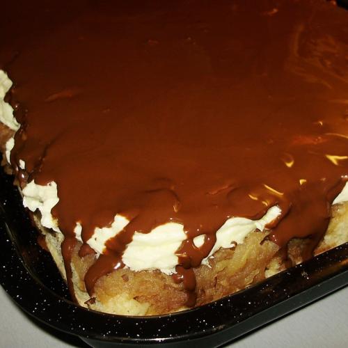 Receptov a druhov krémešov je viac. Tento jablkový krémeš, ktorý je veľmi šťavnatý, je najlepší na druhý - tretí deň, keď sa dobre odleží v chladničke. Krém do krémešu je dobré urobiť zo zlatého klasu, ale nie každý ho má možnosť kúpiť. Čokoládovú polevu dávame len tenkú vrstvu, aby sa pri krájaní nelámala.