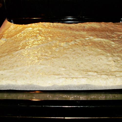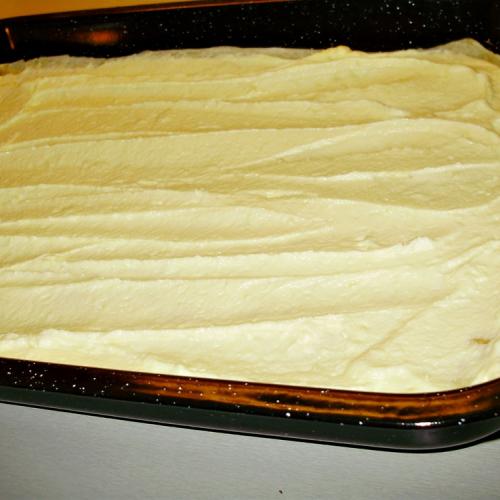 Upečieme v horúcej rúre na 200 stupňov asi 20 minút. Po upečení necháme piškótu vychladnúť. V mlieku uvaríme puding zo zlatého klasu a necháme tiež vychladnúť. Pri chladnutí občas puding premiešame, aby sa na ňom neutvorila kôra, alebo ho zkryjeme fóliou a necháme tak vychladnúť. Maslo vyšľaháme s cukrom a prišľahávame k nemu vychladnutý puding. Až nakoniec doňho vmiešame trochu rumu, alebo rumovej arómy (nie je to potrebné). A potom už len spojíme pláty krémom. Na spodok dáme plát lístkový, potrieme krémom.