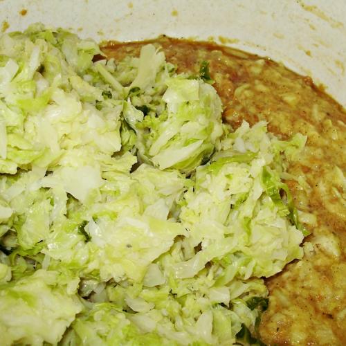 Hlávku kelu pokrájame na malé rezance a pripravíme na pare do polomäkka. Ak nemáte parný hrniec, obvarte ich v horúcej vode. Listy necháme vychladnúť a poriadne ich v dlaniach vyžmýkame. Pridáme ich do vajíčkovej zmesi a premiešame. Ak máte zmes riedku, prisypte trošku strúhanky, ale nie veľa, aby fašírky neboli tvrdé.