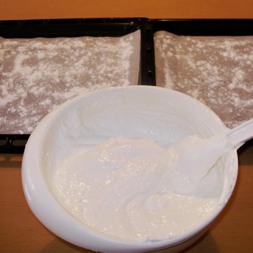 Nechám ich voľne rozmraziť a so štipkou soli vyšľahám. Mám také skúsenosti, že bielky z mrazničky mi idú vždy lepšie vyšľahať, ako čerstvé. Niekedy ich začnem šľahať nie celkom rozmrazené, majú v sebe ešte kúsky ľadu a tie sa mi vyšľahajú najlepšie.