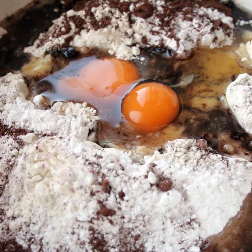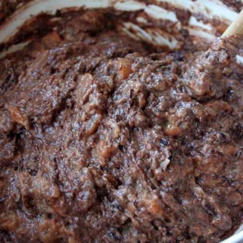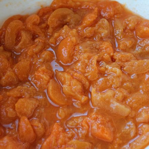 Do misky dáme celý kompót aj so šťavou. Ja dávam jeden veľký 0,7 l a jeden malý 0,3 l. Tak, aby som mala liter. Kompóty mám dobre napechované, málo šťavy, skoro samé ovocie. Ak by ste dávali kupovaný kompót, kde je veľa šťavy, nedávajte ju celú, iba toľko, aby bolo ovocie mokré. Ale odložte si ju! Kompót umytou rukou trocha rozmačkáme, aby neboli celé kusy, ale nie veľa, lebo chceme v koláči kúsky ovocia.