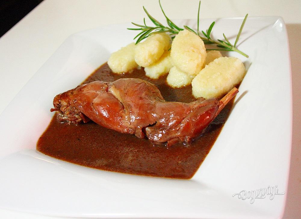 Toto je recept 3 v 1. Králika v čiernej omáčke, zemiakové knedlíčky a perník na strúhanie. Klasický recept staročeskej kuchyne, ktorá je podľa mňa jedna z najchutnejších.