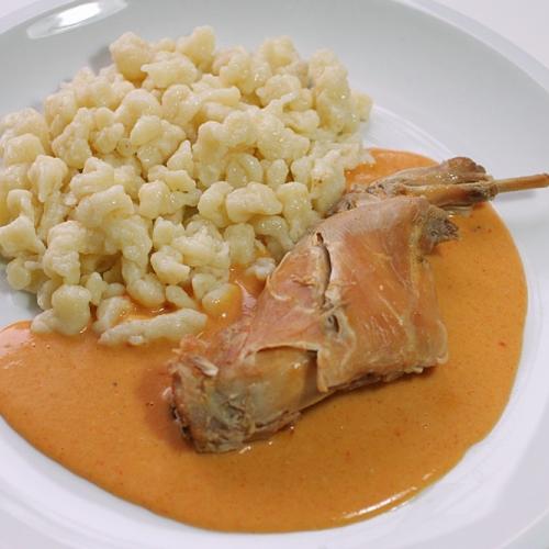 Králika, alebo kura na paprike s haluškami bola u nás nedeľná klasika. Jedlo je to sýte a výborné :)