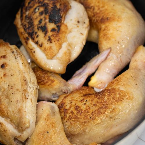 Kura na paprike sa dá urobiť aj zo stehien, alebo pŕs. Ale veľmi odporúčam použiť maso s kosťami, ktoré dodajú omáčke tú správnu silnú chuť a ani nebude treba dohusťovať. Celé kura rozdeliť na krídla, prsia a stehná nie je tak ťažké. A skelet z kuraťa môžeme zamraziť neskôr na vývar.