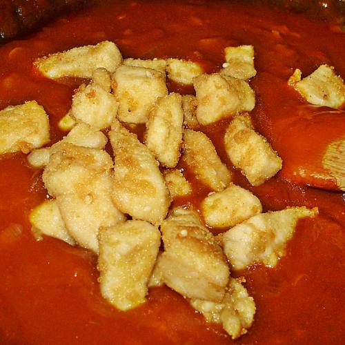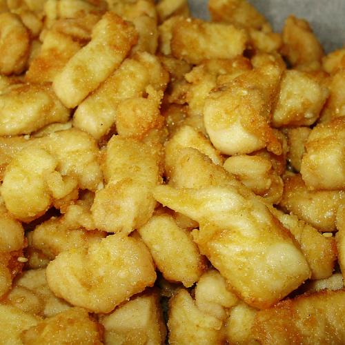 Kura na tento spôsob máme veľmi radi. Je to rýchle, šťavnaté a veľmi jednoduché. Môžete použiť kuracie prsia, alebo vykostené kuracie stehná. Mäso len nakrájajte na maličké kocky, obalte, vysmažte a namočte.