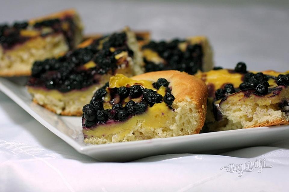 Kysnuté koláče s čerstvými čučoriedkami sú vždy vynikajúce. Tento je ešte obohatený pudingovou vrstvou, čo zaručuje šťavnatosť a pre deti je veľkou maškrtou.