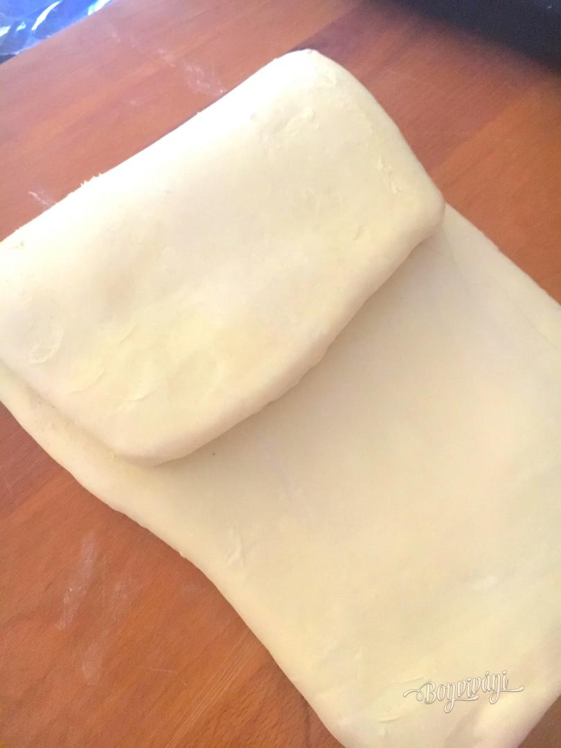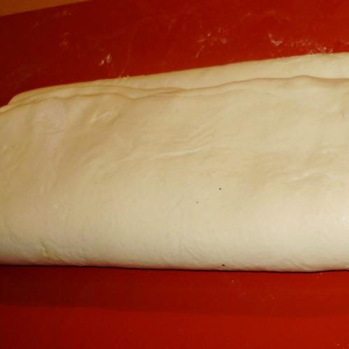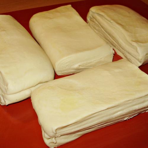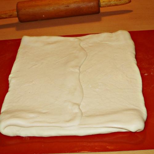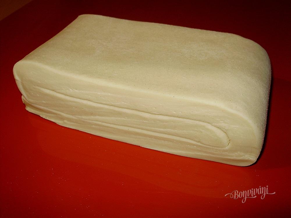 Vždy musí byť cesto vychladené - tuhé. Po každom vaľkaní musíme dbať na to, aby bolo cesto v rohoch pravidelné, pravoúhle a každá poloha aby sa navzájom kryla. Jemne podsýpame múkou, ale vždy ju treba pri skladaní zmetáčikom odstrániť.