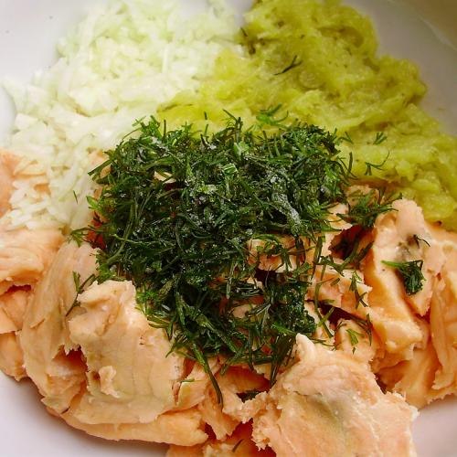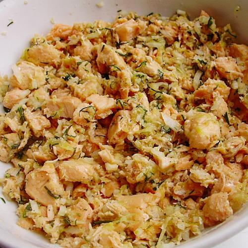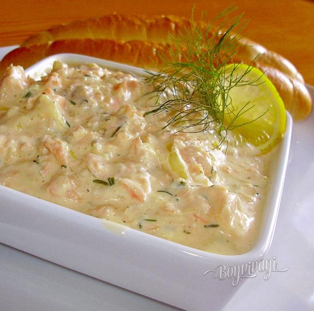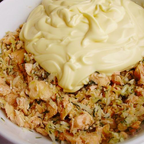 V tomto recepte je vlastne obdoba tresky v majonéze, ale použijeme lososa. Príde vhod ak kúpime väčší kus lososa, pekné hrubšie kúsky si necháme na steaky a nižšie odrezky si odložíme na tento výborný rybací šalát.