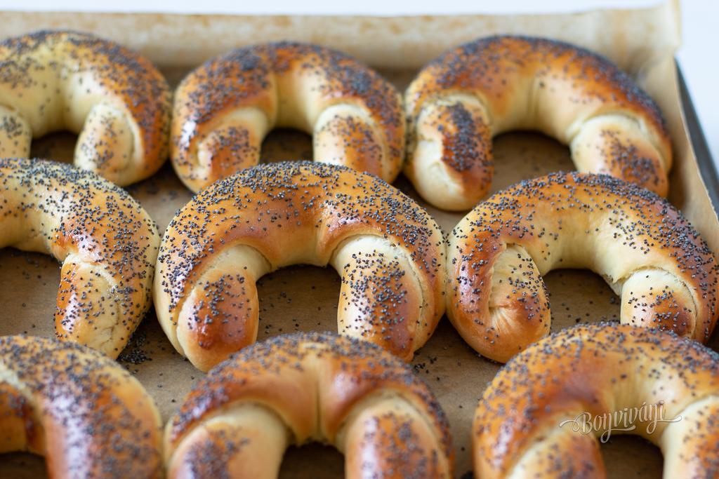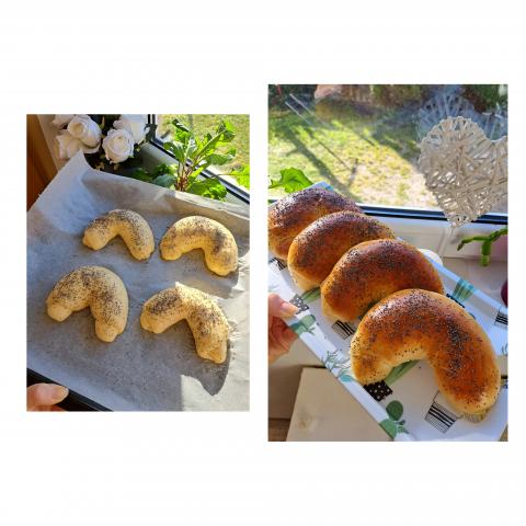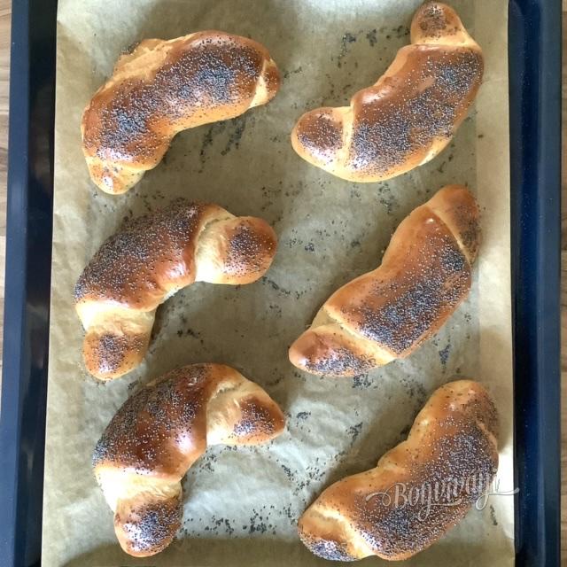 Lupačky dáme na plech s papierom kysnúť na necelú hodinu, ale zakryté utierkou, aby neobschli. Po vykysnutí lupačky potrieme bielkom, čo nám ostalo z vajca, jemne posypeme makom a dáme piecť na 180 stupňov.