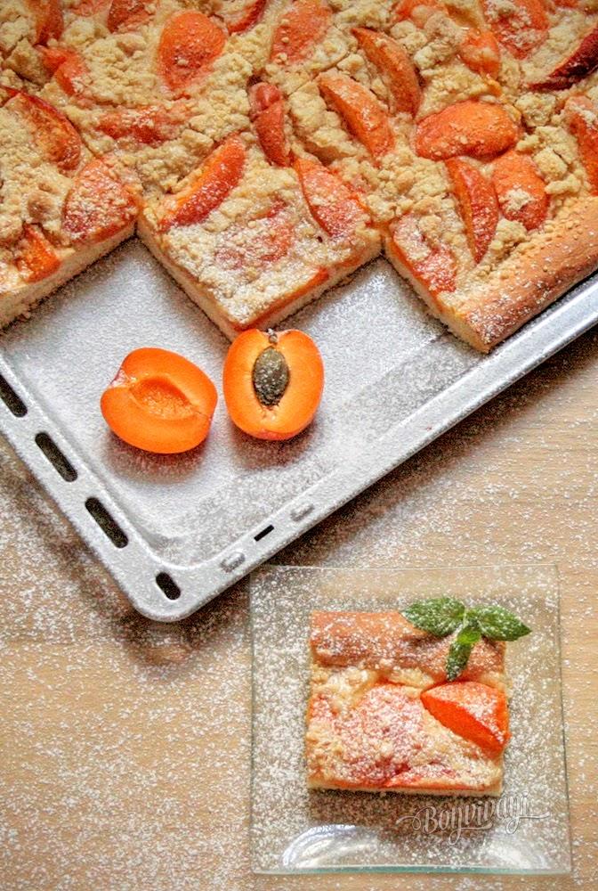 Voňavý, šťavnatý a veľmi chutný marhuľový koláč s posýpkou. Takéto koláče piekla naša babka. Robievala aj slivkové, ale tieto marhuľové sú asi ešte lepšie. Základom je jednoduché kysnuté cestu, na ňom sú rozložené čerstvé marhule a všetko je zasypané posýpkou z masla a cukru.