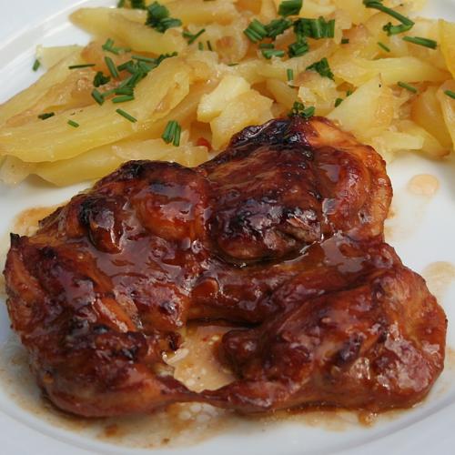 Vykostené kuracie stehná marinované v sladko-kyslej marináde sú vhodné na gril, ale môžete ich opiecť na panvici, či v rúre.