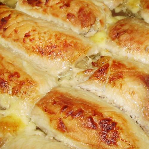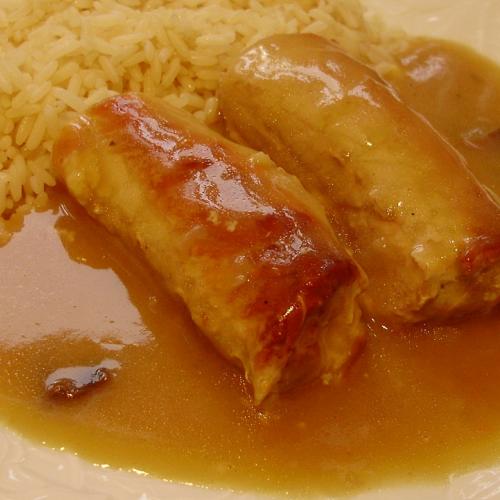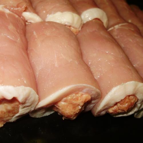 Závitky z bravčového mäsa sú naplnené jednoducho fášou z mletého mäsa, s kúskom syra, preliate jemnou prírodnou šťavou s hubovou arómou.