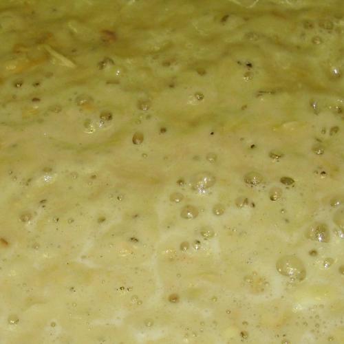Zalejeme studenou vodou, do ktorej sme pridali výpek zo závitkov a za stáleho šľahania metličkou nalejeme na zásmažku a privedieme k varu.
