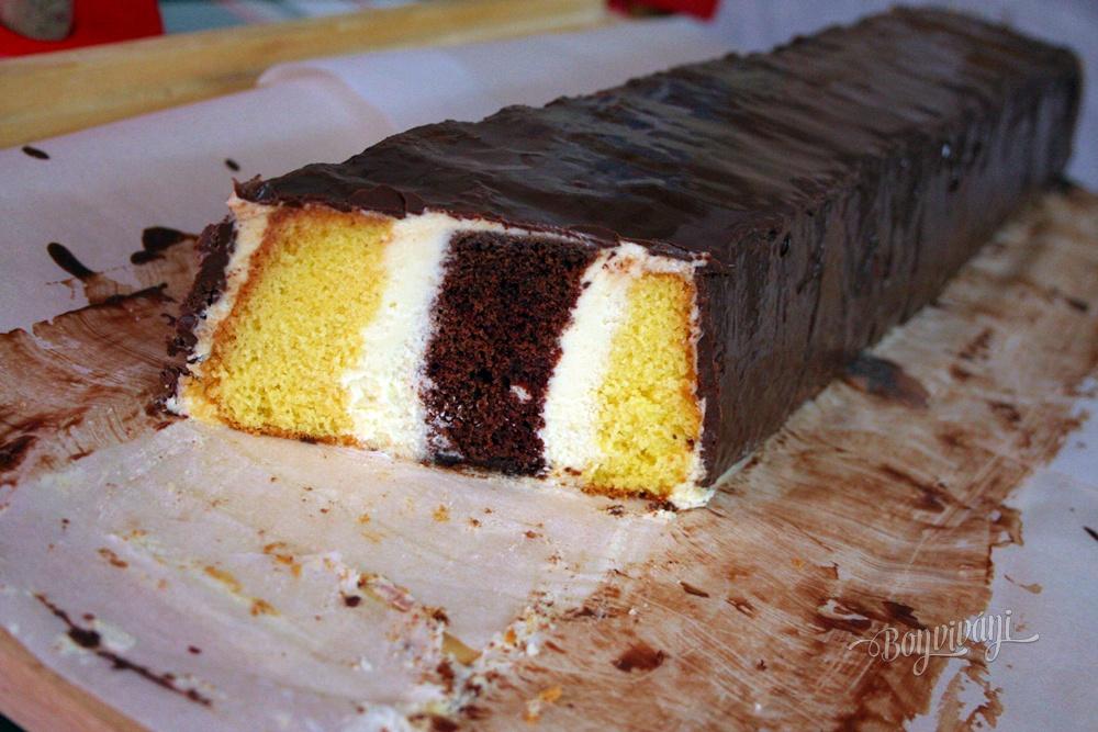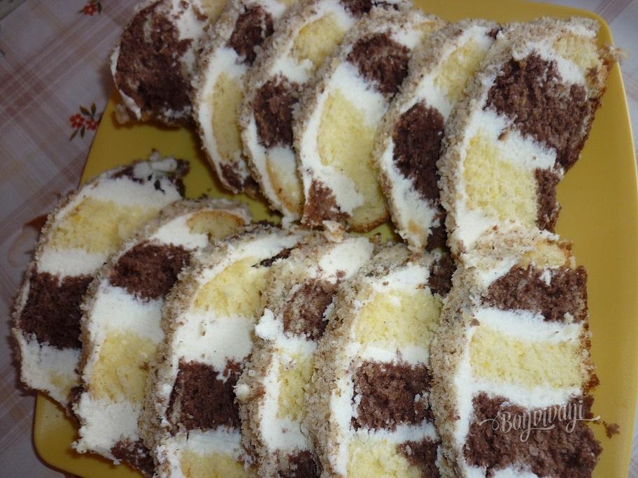 Najskôr pripravíme dve formy, ktoré vymastíme a vysypeme múkou. Cesto pripravíme tak, že vyšľaháme najskôr bielky so štipkou soli a v druhej miske vyšľaháme do peny žĺtky s cukrom, prišľaháme vlažnú vodu a olej. Do tejto hmoty striedavo primiešavame preosiatu múku zamiešanú s jedným kypriacim práškom a tuhý sneh.