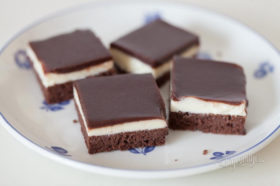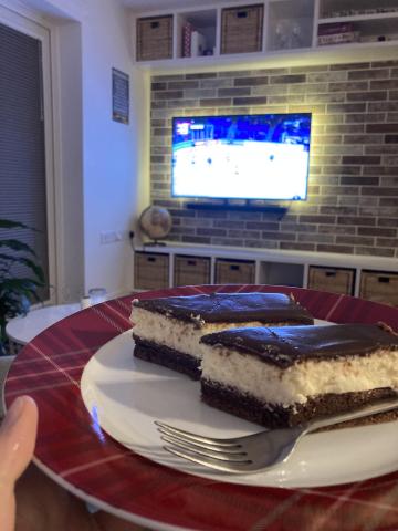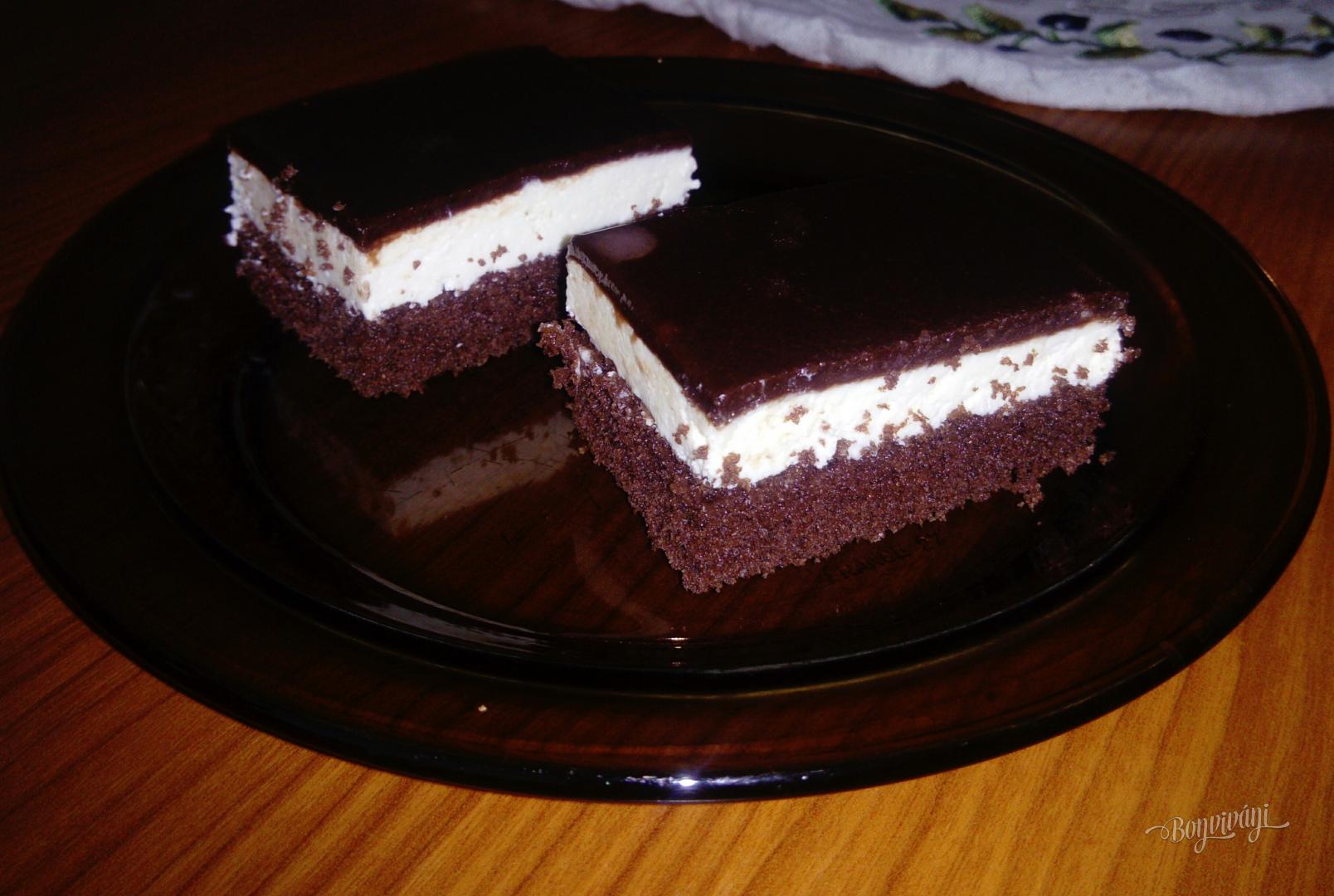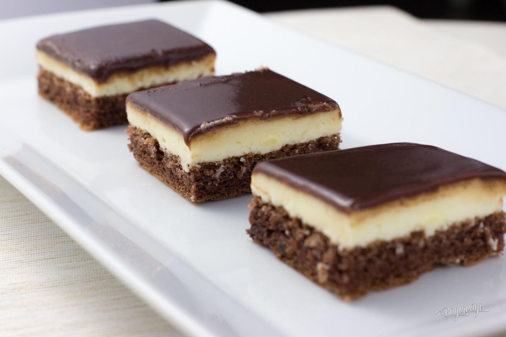 Tyto řezy dělám už dlouho a vždy na každé oslavě hned zmizí ze stolu :-) Jen na polevu používám čokoládu na vaření s trochou smetany a másla :-) Ale je pravda,že pak se moučník trošku hůře krájí :-),aby poleva nepopraskala ............hezký víkend