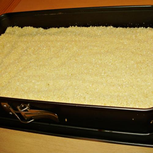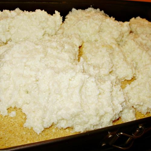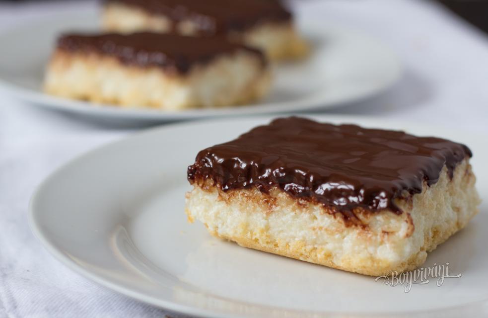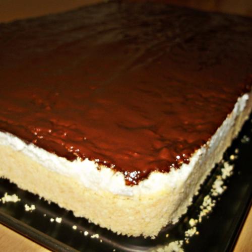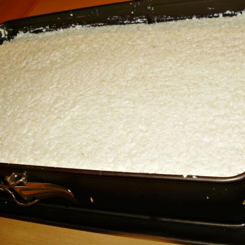 Jednoduchý ryžový koláčik s kokosovým pudingom a čokoládovou polevou :)