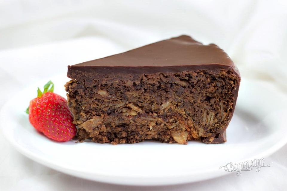 Celá je potiahnutá čokoládou. Tortu je treba piecť vo veľkej forme s priemerom aspoň 30 cm. Torta sa pečie asi 70 minút na 160 stupňov. No riaďte sa podľa seba, každá rúra pečie inak.