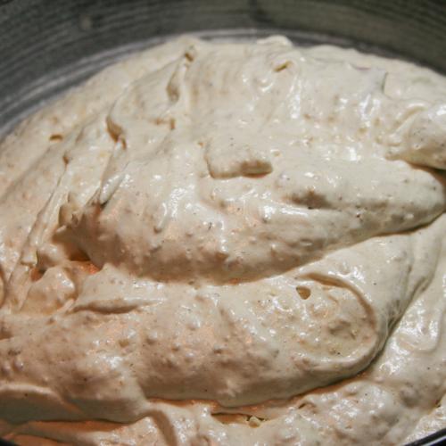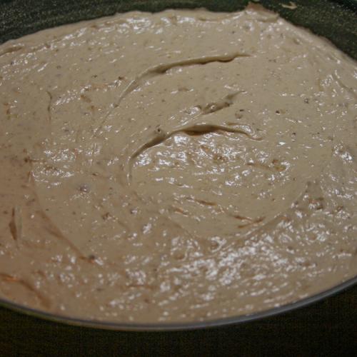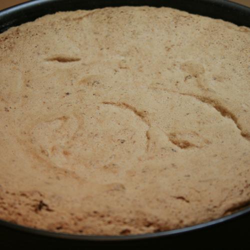 Na korpus si pripravíme tri misky. V jednej väčšej miske vyšľaháme žĺtky s cukrom do peny. Do vyšľahanej peny prišľaháme pomaly pol deci horúcej tureckej kávy. V druhej miske do tuha ušľaháme bielky s mletým cukrom. A v tretej miske rozmiešame múku s pomletými orechami a kypriacim práškom. Nakoniec hmoty spojíme tak, že do žĺtkovej zmesi v prvej miske pomaly striedavo stierkou primiešame krúživými pohybmi bielky a múku.