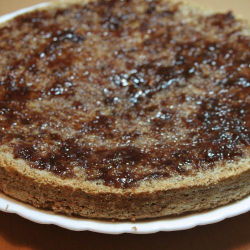 Kým sa korpus upečie, dáme do hrnca orechy s cukrom, zalejeme smotanou a krátko povaríme. Necháme vychladnúť. Pripravíme si marmeládu. Skvelú marmeládu z datlí a fíg sme kúpili na edelikatesy.cz