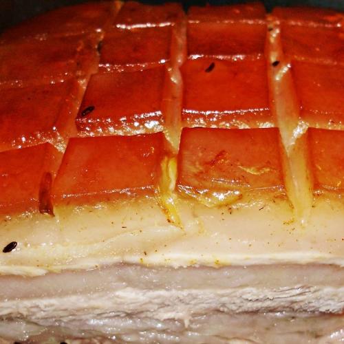 Treba kúpiť len nádherný bôčik a potom už je postup jednoduchý. Kus môžete uvariť a druhý kus upiecť.