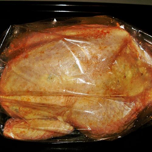 Ahoj, sáčok sa dá kúpiť v oddelení kde majú papier na pečenie. A ak sáčok nemáš, je dobré kura nasoliť aspoň pár hodín pred pečením, aby bolo chrumkavé :)