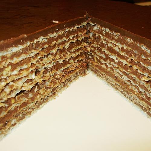 I moje babička tenhle dortík dělávala! Recept nezanechala, určitě nehýřila čokoládou, ale pamatuju si, že každý plátek potírala domácí pikantní marmeládou a teprve na to dávala krém - myslím, že byl nějaký ořechový. Já tenhle dortík nikdy nepovažovala za něco úžasného (jako dítě), připadalo mi to jako "ošizený" dort:) - to jsem byla hloupá. Kdyby tu dnes babička byla a ten dortík mi udělala, ruku bych jí za něj políbila!