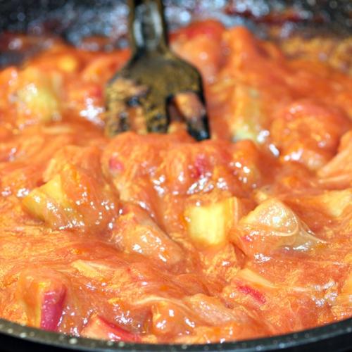 Aj keď rebarboru používam na koláče čerstvú, v tomto recepte som ju povarila s cukrom a škoricou.