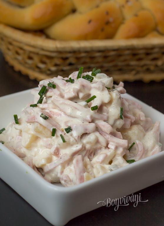 Rozpis surovín v recepte je asi na jeden kilogram šalátu. Menej sa ani robiť neoplatí, pretože čo nedáme na chlebíčky, skonzumujeme s čerstvým pečivkom.